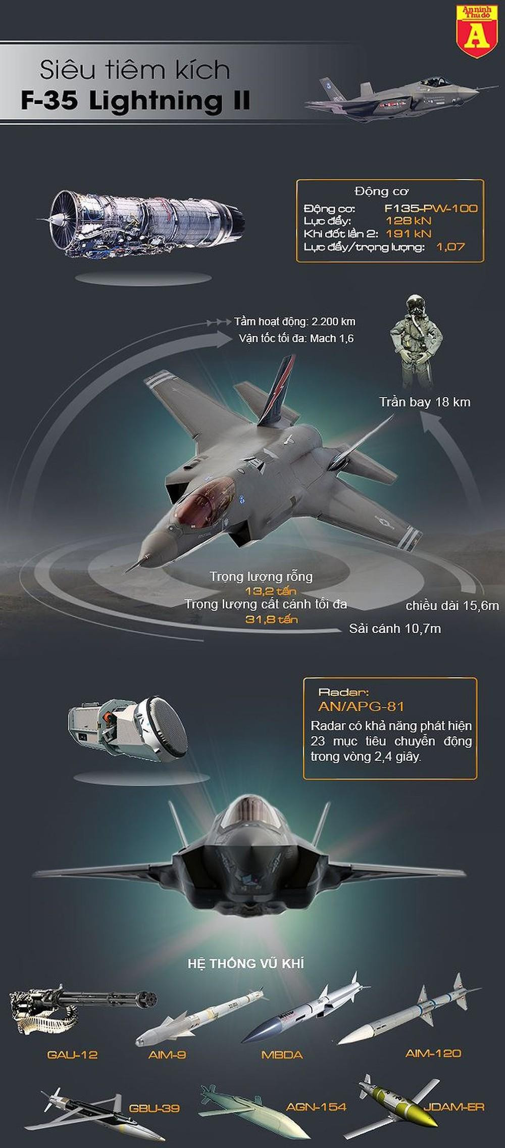 F-35 được coi là xương sống trong quá trình phát triển máy bay chiến đấu tương lai của Mỹ nhờ cơ chế tàng hình tiên tiến. Tiêm kích tàng hình này còn thể hiện sự lợi hại với khả năng tiếp liệu trên không, giúp mở rộng tối đa phạm vi hoạt động.