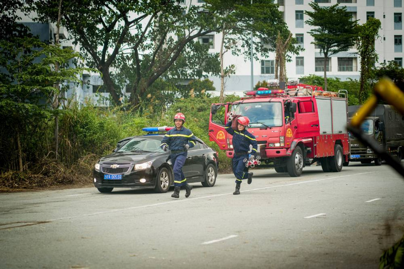 Theo dõi sát sao từng hành động của các chiến sĩ nhập vai, Đại úy Lê Trung Dũng ghi nhận tinh thần dũng cảm của hai nghệ sĩ: “Dù hai đồng chí đó mới lần đầu tiếp cận phương tiện, nhưng dưới sự phối hợp và hiệp đồng tốt, đã thực hiện nhiệm vụ rất hiệu quả. Quan trọng hơn, các đồng chí đã đặt tính mạng con người lên hàng đầu, đúng tinh thần của người chiến sĩ Công an nhân dân”.