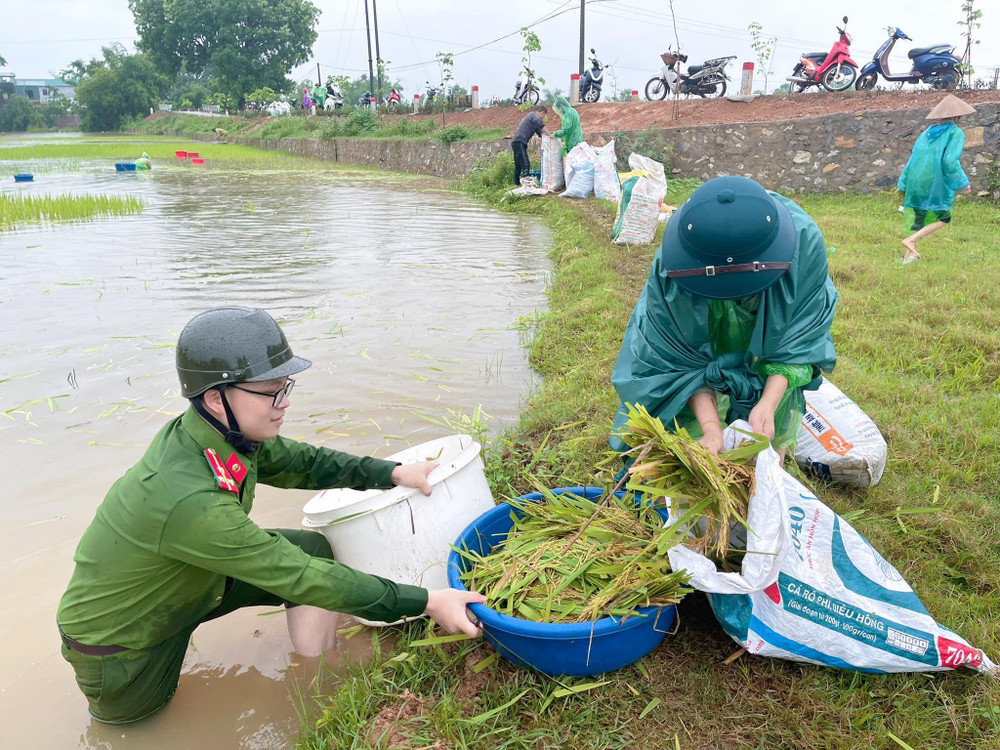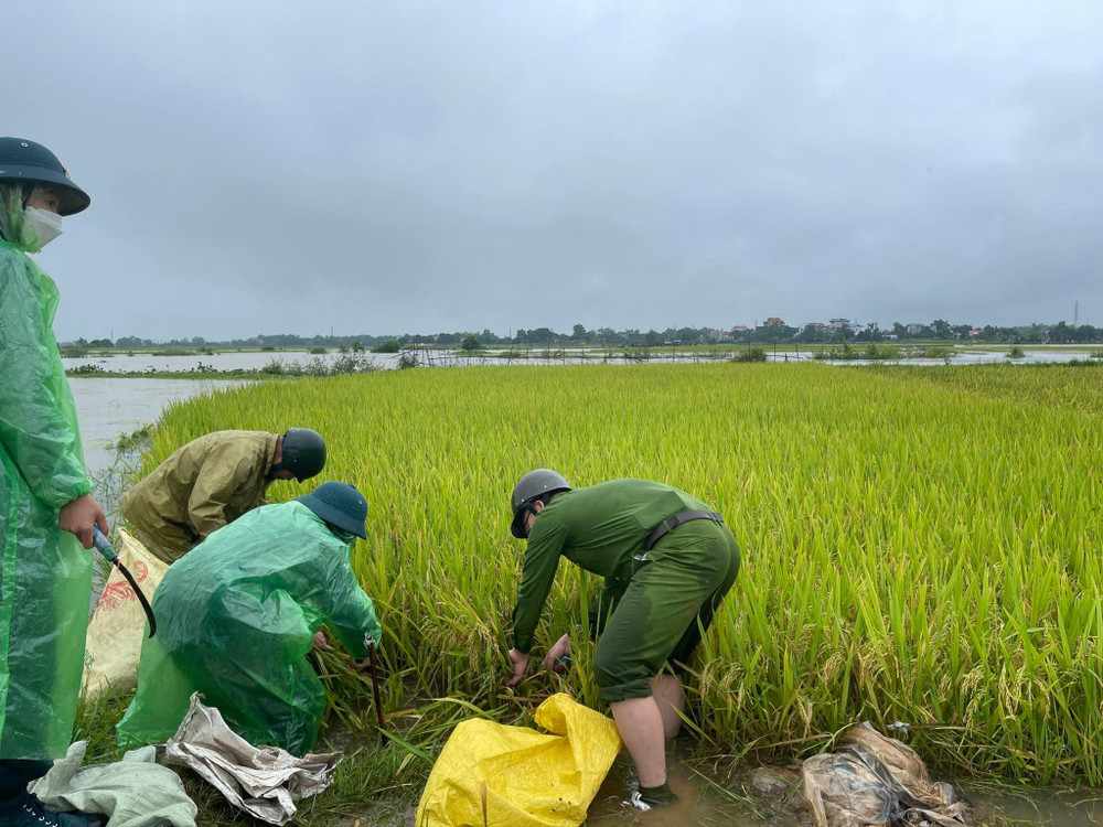 ANTD.VN - Ngày 24-5, sau những trận mưa lớn kéo dài nhiều ngày liên tiếp, một số xã trên địa bàn huyện Thạch Thất, Hà Nội lâm vào cảnh ngập úng nặng, như Cần Kiệm, Lại Thượng, Kim Quan... Lúa và hoa màu của bà con chuẩn bị đến ngày thu hoạch bị ảnh hưởng nghiêm trọng. Trước tình hình cấp bách, lực lượng Công an xã đã cùng các đơn vị khẩn trương xuống đồng cùng bà con cứu lúa.