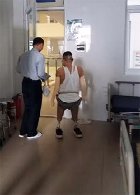 Đến nay, chiến sỹ Dương đã có thể tự đi một mình bằng chân giả. Ảnh: Phượng Hoàng