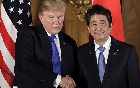 Tổng thống Mỹ Trump và Thủ tướng Nhật Bản Abe bắt tay trong sau khi kết thúc một buổi hội đàm