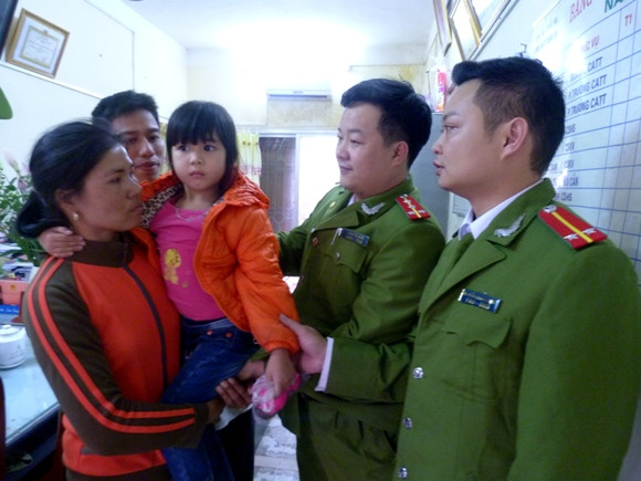 Đón nhận con gái từ tay các chiến sỹ công an, chị Lê Thị Hồng (mẹ cháu bé bị lạc) đã òa khóc trong sung sướng. Người phụ nữ này cho biết, trong lúc bấn loạn đã nhờ họ hàng, người quen tìm kiếm khắp nơi. “Chúng tôi rất sợ cháu bị bắt cóc. Chỉ đến khi nhận tin từ Công an thị trấn, chúng tôi mới hết lo lắng” – chị Hồng tâm sự.