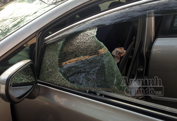 Đợi hai mẹ con vừa đi khuất dạng sau cổng trường, lập tức xuất hiện một nam thanh niên, áp sát chiếc xe ôtô. Trong tích tắc, sau tiếng động mạnh, kính bên lái của xe vỡ vụn.