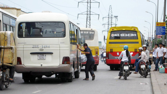 Có mặt trên trục Giải Phóng, Kim Đồng, theo quan sát của phóng viên, xe “rùa bò” là dấu hiệu dễ nhận thấy nhất tại các cổng bến xe Hà Nội. Không chỉ “bò” trong khu vực cổng mà khi ra đường Giải Phóng, Phạm Hùng, Pháp Vân… xe vẫn tiếp tục lững thững. Chỉ đến khi thấy lực lượng công an chốt trực, lái xe mới cho xe chạy thẳng. “Né” được công an, đi thêm vài trăm mét, nhiều xe lại tiếp tục chạy chầm chậm, phụ xe thì ngang nhiên mở cửa để câu kéo khách dọc đường.