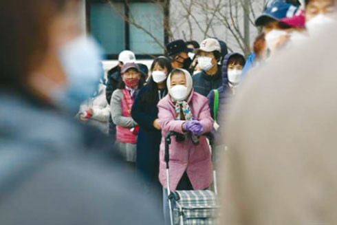 Người dân Hàn Quốc xếp hàng chờ mua khẩu trang ở Daegu