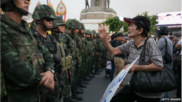 Cuộc đảo chính sau biểu tình lật đổ chính phủ của Thủ tướng Yingluck Shinawatra đã khiến ít nhất 28 người thiệt mạng và hàng trăm người bị thương trong tình trạng bất ổn. Sự loại bỏ quân đội của chính phủ được bầu đã bị chỉ trích rộng rãi trong quốc tế.