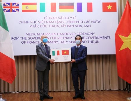 Lễ trao vật tư y tế Việt Nam tặng các nước châu Âu đang bùng phát dịch Covid-19