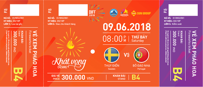 Riêng đêm khai mạc (30/4) và đêm chung kết (30/6), giá vé có sự điều chỉnh cho phù hợp nhu cầu thực tế. Cụ thể, vé dành cho khách lẻ theo các khán đài như sau: B4: 400.000 đồng/vé; B3: 600.000 đồng/vé; B1 + B2: 800.000 đồng/vé; A2+A3: 1.000.000 đồng/vé; A1 (khán đài VIP): 2.000.000 đồng/vé.