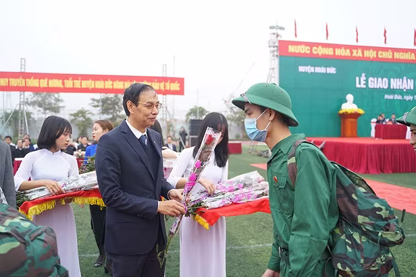 Còn tại lễ giao nhận quân của huyện Hoài Đức, Phó Bí thư Thành ủy Hà Nội Đào Đức Toàn đã đến dự, động viên các tân binh lên đường phát huy truyền thống anh hùng của địa phương, nỗ lực hoàn thành nhiệm vụ, xứng đáng với truyền thống bộ độ Cụ Hồ.