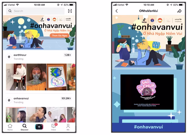 TikTok Việt Nam đã phối hợp với Bộ Y Tế, Quỹ Nhi đồng Liên hợp quốc (UNICEF) và các tổ chức khác chính thức khởi động chiến dịch “Ở Nhà Vẫn Vui” (#onhavanvui) kêu gọi người dùng ở nhà để cùng chung tay phòng chống dịch bệnh.