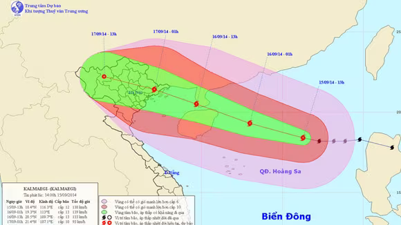Hồi 13h ngày 15-9, vị trí tâm bão ở vào khoảng 18,4 độ vĩ Bắc; 116,3 độ kinh Đông, cách quần đảo Hoàng Sa khoảng 480km về phía Đông Đông Bắc. Sức gió mạnh nhất ở vùng gần tâm bão mạnh cấp 12, cấp 13 (tức là từ 118 đến 149 km một giờ), giật cấp 15, cấp 16.