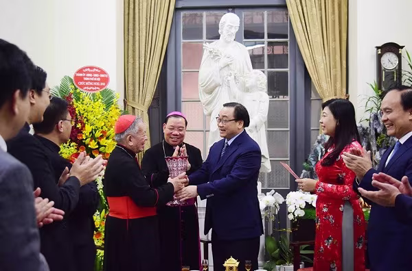 Bí thư Thành ủy chúc mừng Hồng y Nguyễn Văn Nhơn đã hoàn thành nhiệm vụ làm Tổng giám mục Tổng giáo phận Hà Nội
