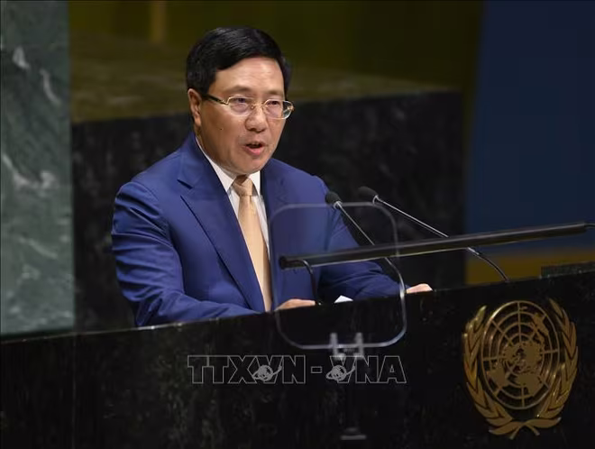 Ngày 28/9 (giờ địa phương), Phó Thủ tướng, Bộ trưởng Ngoại giao Phạm Bình Minh đã có bài phát biểu quan trọng tại phiên thảo luận cấp cao Khóa họp thứ 74 Đại hội đồng Liên Hợp Quốc ở thành phố New York (Mỹ), hướng tới chủ đề năm nay mà Đại hội đồng đã chọn là “Thúc đẩy các nỗ lực đa phương để xoá nghèo, thúc đẩy giáo dục chất lượng, ứng phó với biến đổi khí hậu và phát triển bao trùm”.