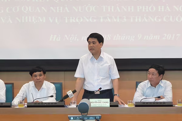 Chủ tịch UBND TP Hà Nội Nguyễn Đức Chung phát biểu tại hội nghị