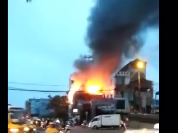 Ngay sau khi người dân hô hoán, một số vị khách mới tá hỏa chạy ra khỏi quán này. Một nhân chứng cho biết, ban đầu xuất hiện một cột khói đen cao hàng chục mét, sau đó kèm theo ngọn lửa cháy lớn.