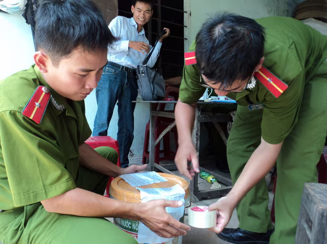 Cảnh sát phòng chống tội phạm về môi trường Công an Phú Yên kiểm tra đột xuất cơ sở chế biến vàng của ông Thuần
