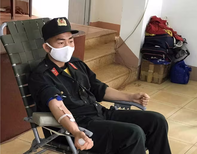 Thượng úy Công trong một lần tham gia hiến máu tình nguyện