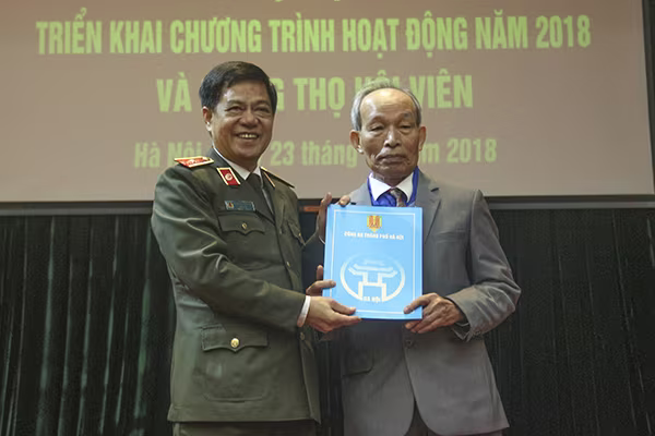 Thiếu tướng Đoàn Duy Khương, Giám đốc CATP Hà Nội tặng quà chúc mừng CLB Sĩ quan hưu trí CATP