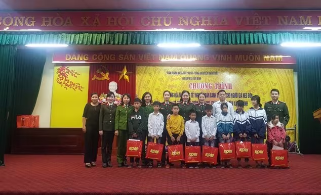 Công an huyện Thạch Thất trao tặng quà cho các em học sinh có hoàn cảnh khó khăn