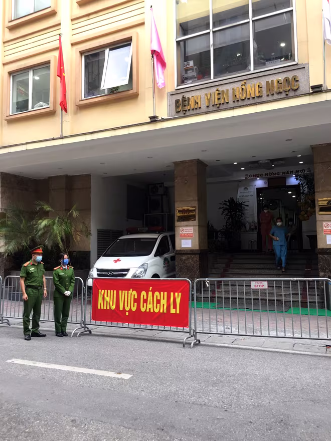 Chốt cách ly tại khu vực Bệnh viện Hồng Ngọc