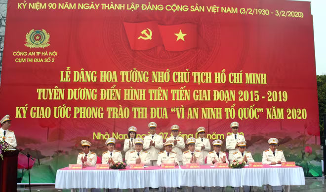 Cụm thi đua số 2 - CATP Hà Nội do Phòng Cảnh sát môi trường CATP làm Cụm trưởng, tổ chức “Lễ dâng hoa tưởng nhớ Chủ tịch Hồ Chí Minh, tuyên dương điển hình tiên tiến giai đoạn 2015 - 2019 và ký giao ước phong trào thi đua “Vì An ninh Tổ quốc” năm 2020 tại Khu lưu niệm Sáu điều Chủ tịch Hồ Chí Minh dạy CAND (xã Nhã Nam, huyện Tân Yên, tỉnh Bắc Giang).