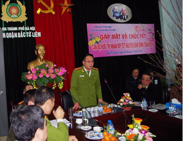 Phát biểu tại buổi gặp mặt, Đại tá Nguyễn Thanh Tùng, Trưởng CAQ Bắc Từ Liêm đã thông báo tóm tắt kết quả thực hiện nhiệm vụ chính trị của CAQ đã đạt được trong năm 2015.