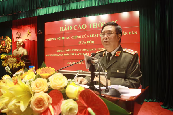 Trung tướng GS.TS.Nguyễn Ngọc Anh, Cục trưởng Cục Pháp chế và Cải cách hành chính, tư pháp Bộ Công an trình bày những điểm mới của Luật CAND
