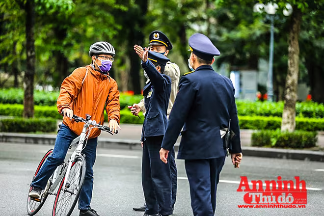 Sáng 4-4, xung quanh khu vực hồ Hoàn Kiếm và một số địa điểm khác, lực lượng chức năng đã tổ chức các chốt và tuần tra phát hiện các trường hợp ra khỏi nhà không đúng diện được quy định tại Chỉ thị 16 của Thủ tướng. Thực tế, khu vực này đã không còn tình trạng người dân tập trung đi tập thể dục đông như mọi ngày.