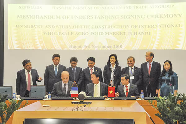 Chủ tịch UBND TP cùng các đại biểu đã chứng kiến lễ Ký kết bản ghi nhớ hợp tác giữa Sở Công Thương Hà Nội, doanh nghiệp Pháp và Việt Nam về việc hợp tác khảo sát xây dựng chợ đầu mối nông sản…