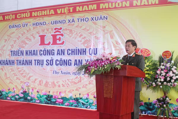 Phát biểu tại buổi lễ, Trung tướng Đoàn Duy Khương biểu dương đánh giá cao CAH Đan Phượng đã tham mưu, tranh thủ sự ủng hộ, giúp đỡ của Huyện ủy, UBND huyện Đan Phượng, xây dựng trụ sở làm việc cho lực lượng công an xã.