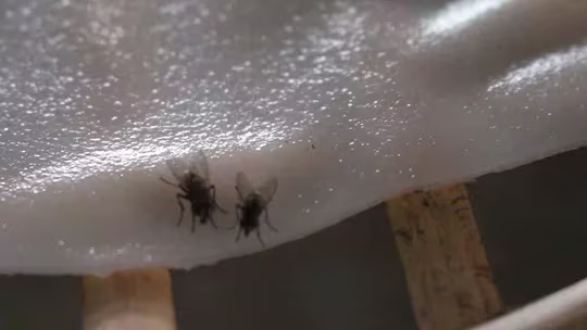 Sản phẩm nguyên liệu và đã qua sơ chế đã bốc mùi chua để nằm vương vãi, ruồi nhặng bâu đầy.