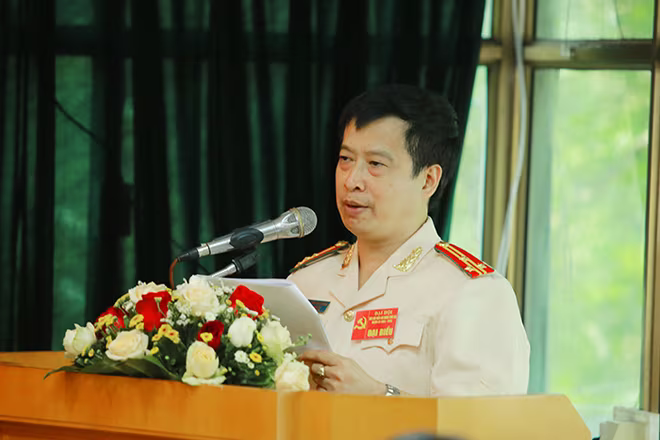 Thiếu tướng Đào Thanh Hải, Phó Bí thư Đảng ủy, Phó Giám đốc CATP Hà Nội phát biểu chỉ đạo tại Đại hội