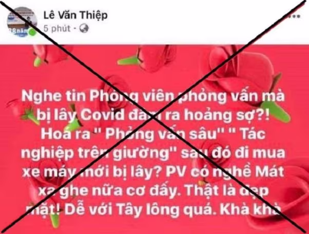 Trước đó, sáng 10-4, Cục PT-TH&TTĐT đã mời ông Lê Văn Thiệp lên làm việc. Tại buổi làm việc này, ông Lê Văn Thiệp đã thừa nhận những sai phạm của mình liên quan đến việc đăng tải dòng trạng thái liên quan đến một phóng viên bị nhiễm Covid-19.