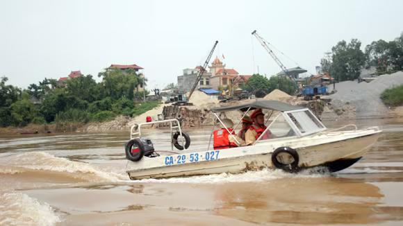 CSGT đường thủy tăng cường tuần tra chống khai thác cát trên sông Hồng