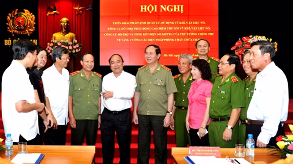 Phát biểu chỉ đạo hội nghị, đồng chí Nguyễn Xuân Phúc đánh giá cao những kết quả các Bộ, ngành, địa phương đạt được trong công tác QLSDVK, VLN và CCHT và tăng cường các biện pháp PCCC. Phó Thủ tướng coi đây là việc làm rất cần thiết trong tình hình hiện nay, bởi nó liên quan trực tiếp đến tính mạng, tài sản của nhân dân. Đồng chí Nguyễn Xuân Phúc cho rằng, tình trạng buôn bán, sử dụng vũ khí, vật liệu nổ và công cụ hỗ trợ trôi nổi trên thị trường đang có những diễn biến phức tạp. Do vậy, Bộ Công an, Bộ Quốc phòng và các địa phương cần phối hợp chặt chẽ trên tinh thần vận động nhân dân giao nộp vũ khí, vật liệu nổ, công cụ hỗ trợ, nhằm đảm bảo ANTT. Phó Thủ tướng Nguyễn Xuân Phúc đã trao Bằng khen của Thủ tướng Chính phủ cho 9 tập thể, cá nhân có thành tích xuất sắc trong công tác QLSDVK, VLN và CCHT.