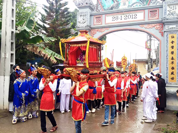 Đoàn rước sẽ đi từ đình ra chùa và đi qua các ngõ lớn trong làng. Ảnh: Thân Văn Cơ