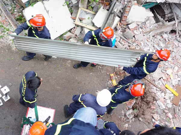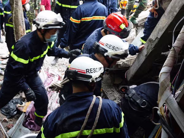 Lực lượng cứu nạn, cứu hộ khẩn trương đưa nạn nhân ra khỏi đống đổ nát