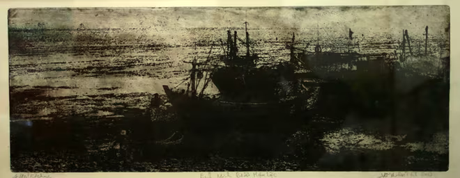 Tác phẩm "Bình minh trên biển Hậu Lộc" của họa sĩ Vũ Xuân Tình