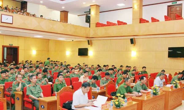 Hội nghị được tổ chức dưới hình thức trực tuyến từ đầu cầu Hà Nội đến TP. HCM và công an các đơn vị, địa phương.
