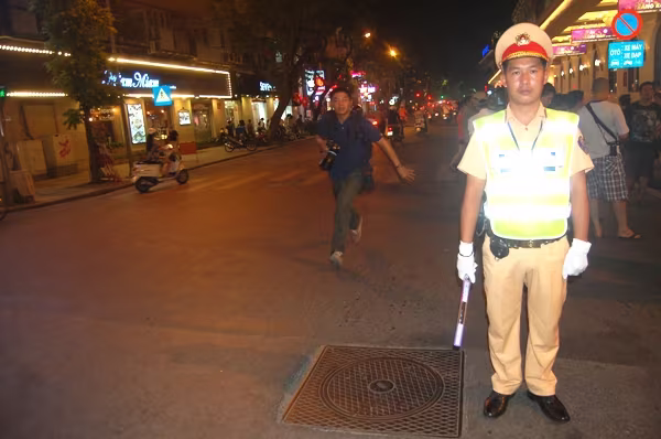 Những phương tiện lưu thông từ Hàng Bài lên Tràng Tiền như mọi ngày, giờ được CSGT phân luồng rẽ vào hai hướng sang Hai Bà Trưng vòng qua Tràng Thi hoặc từ Hai Bà Trưng rẽ vào Phan Chu Trinh. Không có bất cứ một sự lộn xộn, ùn tắc nào. Từ người dân tham gia giao thông như hòa chung vào nhịp điệu, hiệu lệnh chỉ huy giao thông của CSGT.