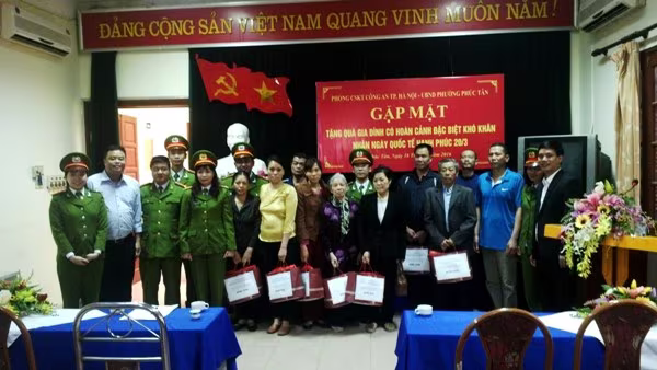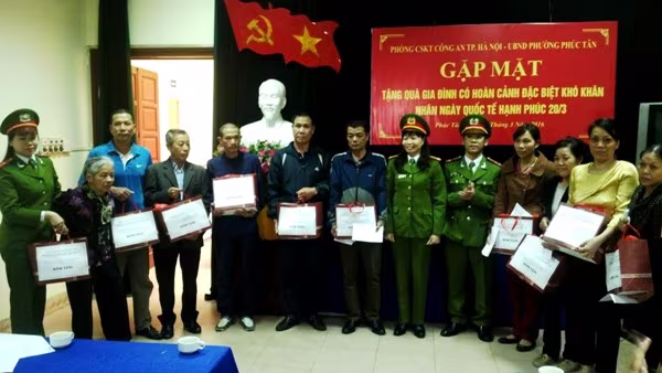 Xuất phát từ mong muốn cùng với chính quyền địa phương tham gia động viên, chia sẻ niềm vui, hạnh phúc, nụ cười, giúp người nghèo có thêm nguồn động lực vươn lên trong cuộc sống, cán bộ chiến sỹ Phòng CSKT CATP Hà Nội đã vận động quyên góp góp để trao tặng 10 phần quà gồm vật phẩm và tiền mặt cho 10 gia đình có hoàn cảnh đặc biệt khó khăn trên địa bàn phường Phúc Tân, quận Hoàn Kiếm.