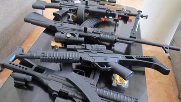 Trước đó, ngày 24-8, Đội Quản lý thị trường số 2, Chị Cục Quản lý thị trường Hà Nội phát hiện tại vỉa hè số 4 phố Đồng Xuân, phường Đồng Xuân, quận Hoàn Kiếm tập kết một lượng lớn đồ chơi bạo lực. Hàng hóa bị thu giữ gồm 30 khẩu súng bắn đạn nhựa, 90 kiếm nhựa, 432 chiếc ô tô đồ chơi hình con giống. Chủ hàng là Nguyễn Thị Đông, trú tại xã Sơn Thủy huyện Thanh Thủy, Phú Thọ cho biết, sau khi tập kết sẽ đem giao số hàng cấm trên cho các cửa hàng đồ chơi để bán trong dịp tết Trung Thu. Liên quan trực tiếp tới mặt hàng đồ chơi bạo lực do Trung Quốc sản xuất, sáng 5-9-2012 vừa qua, Tổ công tác TTKSGT, Đội CSGT số 8 (Phòng CSGT Đường bộ, Đường sắt - CATP Hà Nội) đang trong quá trình làm nhiệm vụ trên tuyến QL 1B đã phát hiện một xe ô tô khách do lái xe Phạm Văn Đoàn ở huyện Lạng Giang (Bắc Giang) điều khiển có chở 4 bao tải. Bên trong chứa gần 1.000 khẩu súng đồ chơi bắn đạn nhựa các loại mang độ sát thương cao.