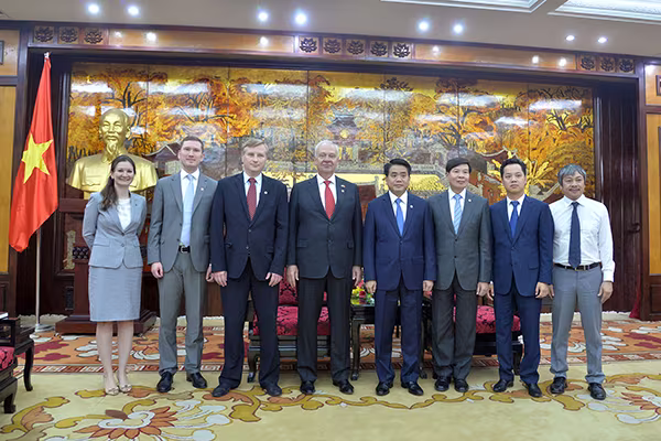 Chủ tịch UBND TP Hà Nội và ngài K.V.Vnukov, Đại sứ đặc mệnh toàn quyền Liên bang Nga tại Việt Nam cùng các thành viên Đại sứ quán Nga
