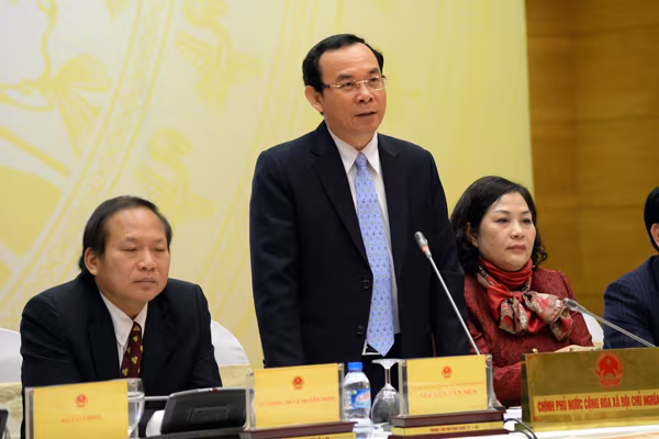 Bộ trưởng, Chủ nhiệm Văn phòng Chính phủ Nguyễn Văn Nên phát biểu tại buổi họp báo