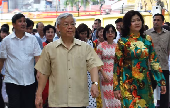 Tổng Bí thư Nguyễn Phú Trọng chia vui với thầy trò trường