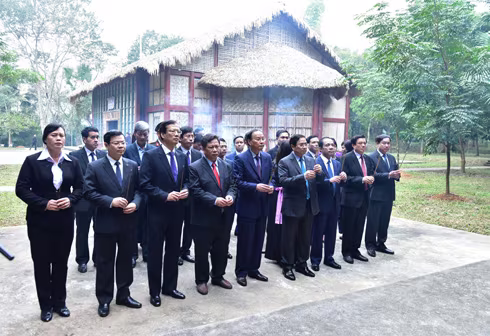 Các vị đại biểu dâng hương tại Đài tưởng niệm các Anh hùng liệt sỹ, lán ở và làm việc của Bác Hồ tại khu di tích.