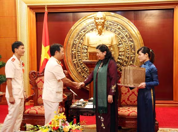 Phó Chủ tịch Quốc hội Tòng Thị Phóng ghi nhận và biểu dương thành tích đặc biệt xuất sắc của thanh niên công an. Đây là những tấm gương sáng đã phát huy truyền thống anh hùng của lực lượng Công an, luôn xung kích thực hiện các nhiệm vụ mà Đảng, Nhà nước giao phó, bảo vệ bình yên cuộc sống của nhân dân.