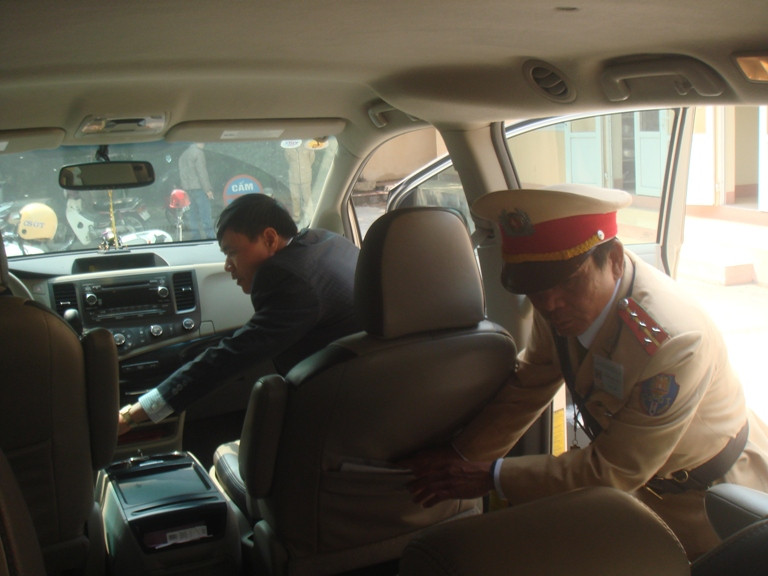 Lái xe ô tô trên là Vương Duy Thành (SN 1976) ở Minh Khai, Từ Liêm, Hà Nội xuất trình đầy đủ giấy phép lái xe, đăng ký xe ô tô đồng thời ký vào biên bản vi phạm Luật Giao thông mà muốn được nộp phạt để nhanh chóng đi tiếp vì có “việc” gấp.