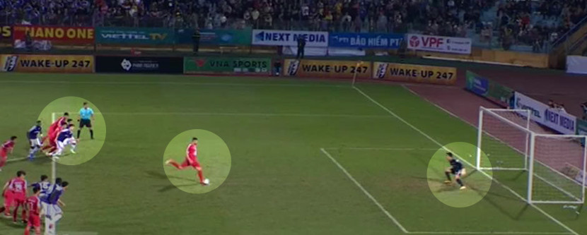 Điều đáng nói là thủ môn Văn Công đã lao lên trên vạch biên ngang tới vài mét, chưa kể một số cầu thủ hai đội còn thâm nhập trái phép vòng 16m50 trước khi Paulo sút phạt chạm bóng.