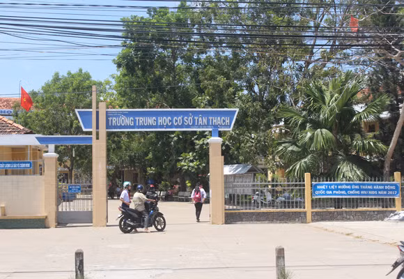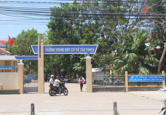 Trường THCS Tân Thạch nơi xảy ra vụ việc học sinh bóp cổ giáo viên